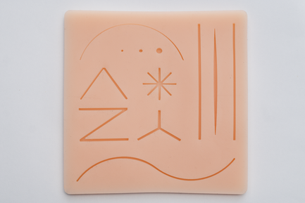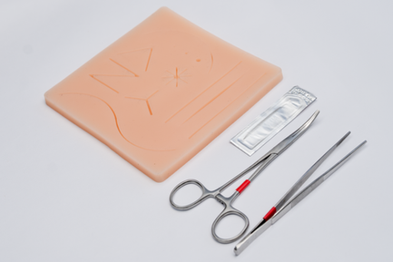 Modelo de Simulación de piel texturizada compuesto por epidermis, dermis, tejido celular subcutáneo y músculo, diferenciación por textura, retracción y color que permite la realización de múltiples suturas en una misma incisión. Resistencia al desgarre similar a la epidermis humana. Permite la realización de sutura simple, continua e intradérmica sea manual o para entrenamiento en cirugía de mínima invasión. Su tamaño (10cm x 10cm) prolonga la vida útil al permitir la realización de múltiples incisiones.